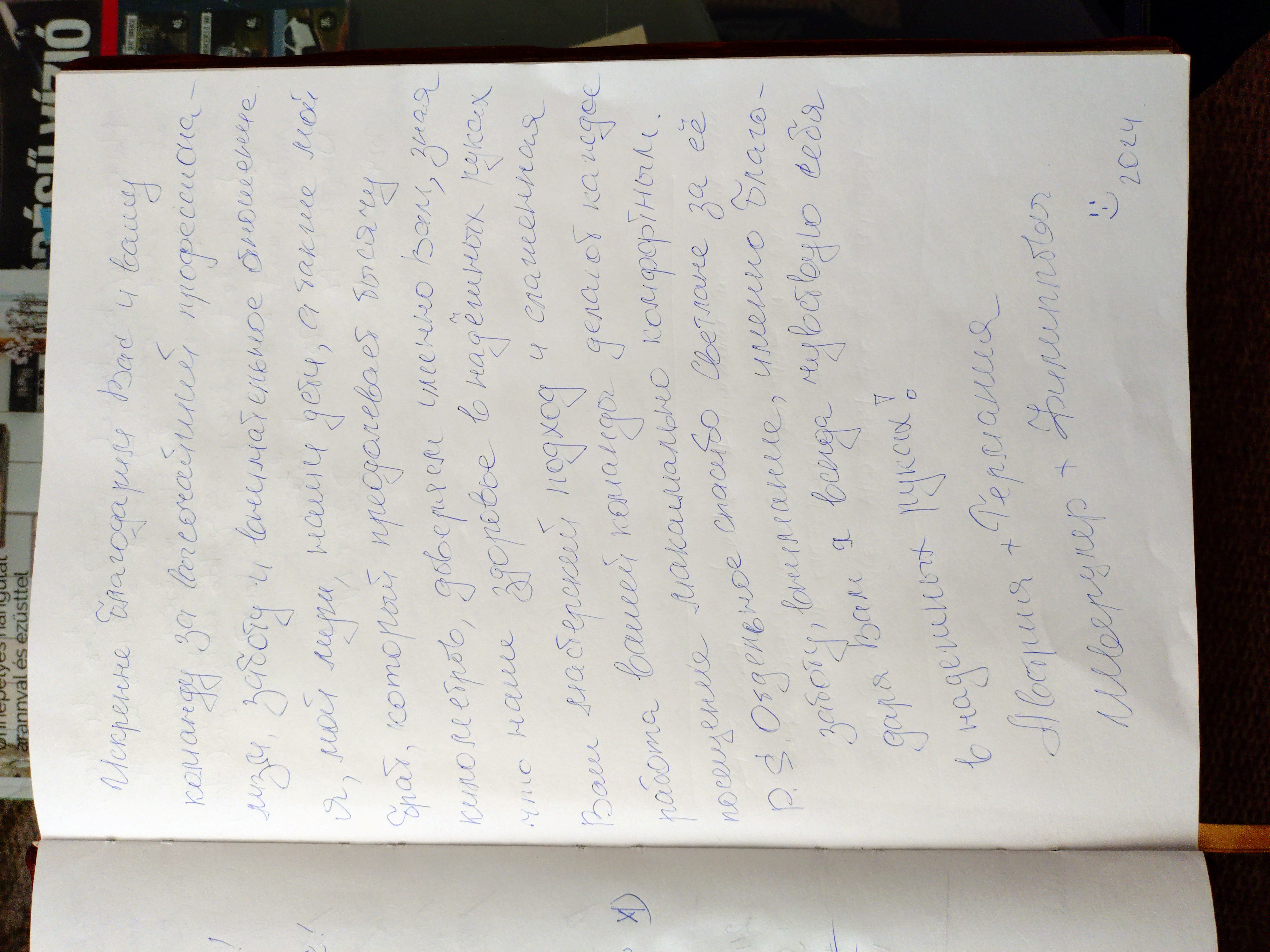Хочу выразить глубокую признательность и огромную благодарность всему коллективу клиники.
